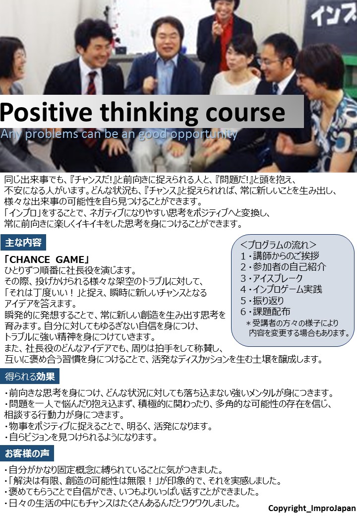 今こそ、「インプロ」で、自ら考え、仕事を創造する力を鍛えていきましょう!