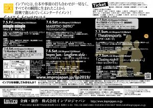 2019年夏、インプロジャパンがお届けする、3日間7インプロステージ!!
