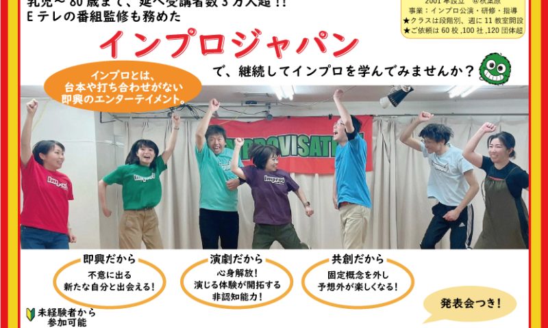 対象:初心者向け/インプロジャパン「パフォーマンスコース」を初めて受講される方。